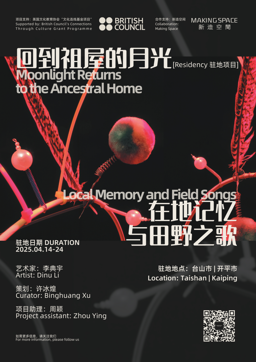 从2025年4月中旬起,英国华裔艺术家李典宇(Dinu Li) 与策展人许冰煌将在广东台山、开平开展一项以“古代与民间知识”为核心的驻地项目。该项目聚焦于与当地的长者社群进行交流与共创,采集、学习、聆听那些通过口口相传,承载着民间迁移记忆与土地智慧的口述故事、地方神话、民间歌谣、手工技艺与自然相处的经验。